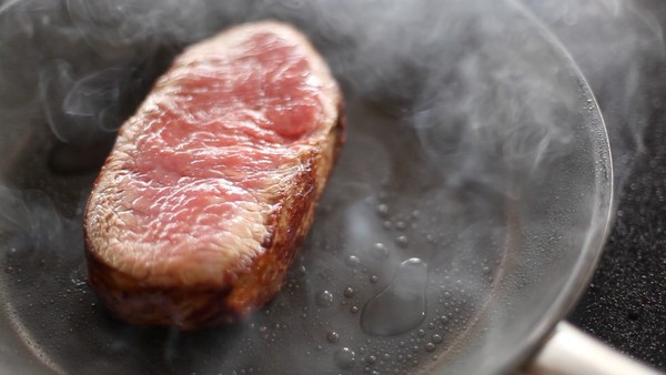 I'd gotten a vacuum sealer, so I put four pieces of steak in vacuum, and cooked them up at 62°C after presearing.